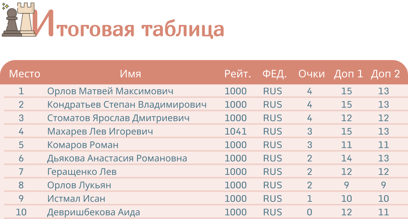 Результаты турнира: https://chessresults.ru/ru/tournaments/profile/34117