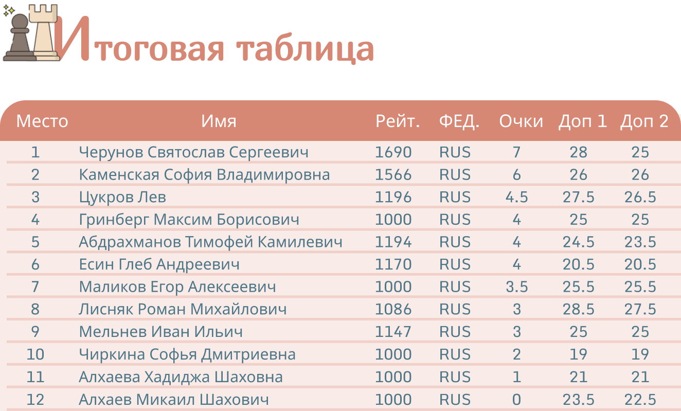 Результаты турнира: https://chessresults.ru/ru/tournaments/profile/35460